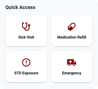 Whether it is a sick visit, medication refill, STD exposure, or emergency, just pick and we handle the rest.